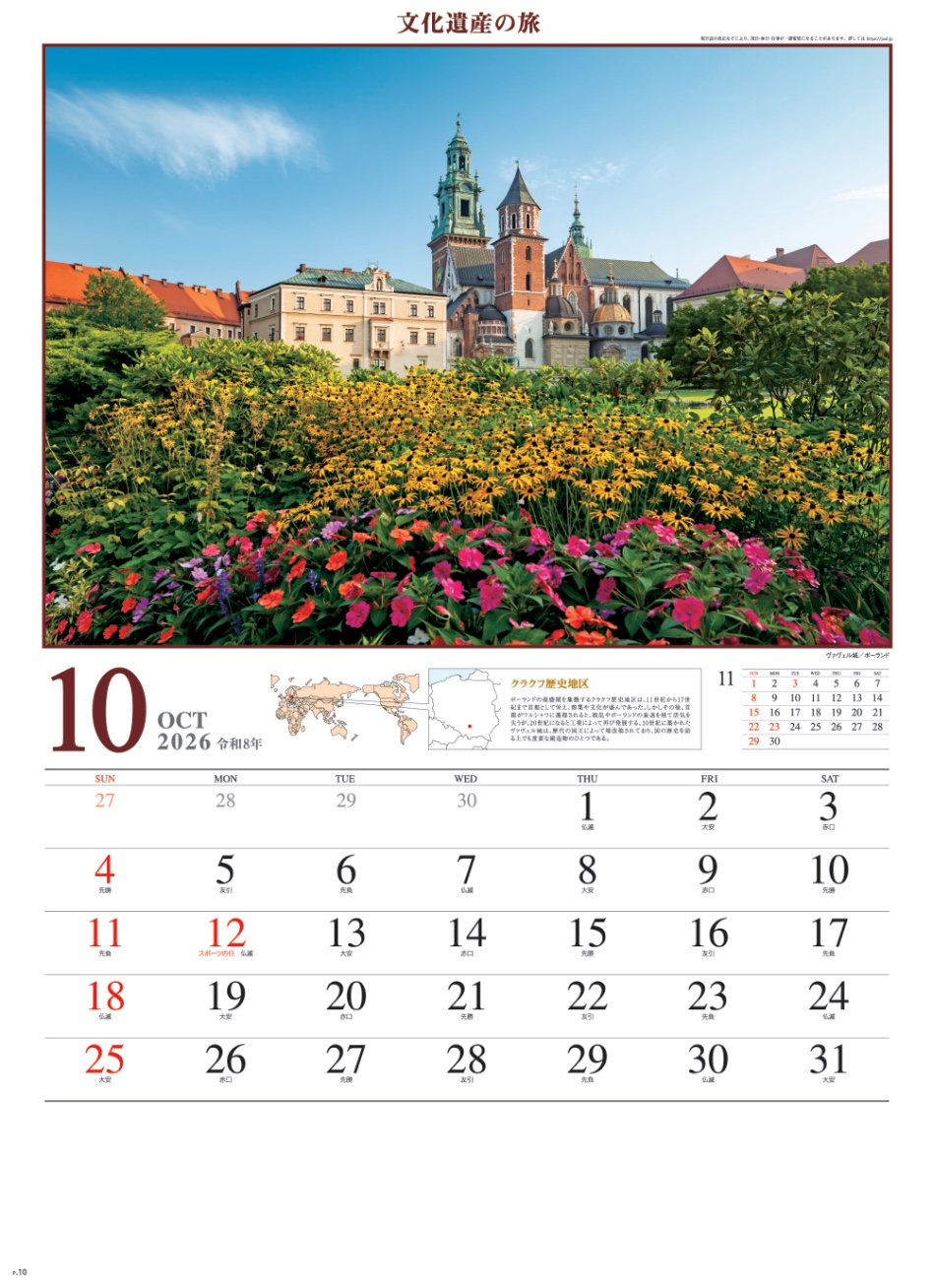 2026年カレンダーの通販サイト SG-473 文化遺産の旅(ユネスコ世界遺産) 2026年カレンダー 世界遺産に登録されている文化遺産を写真で紹介! 日本全国送料無料でお届けいたします! ApplePay/GooglePayに対応!